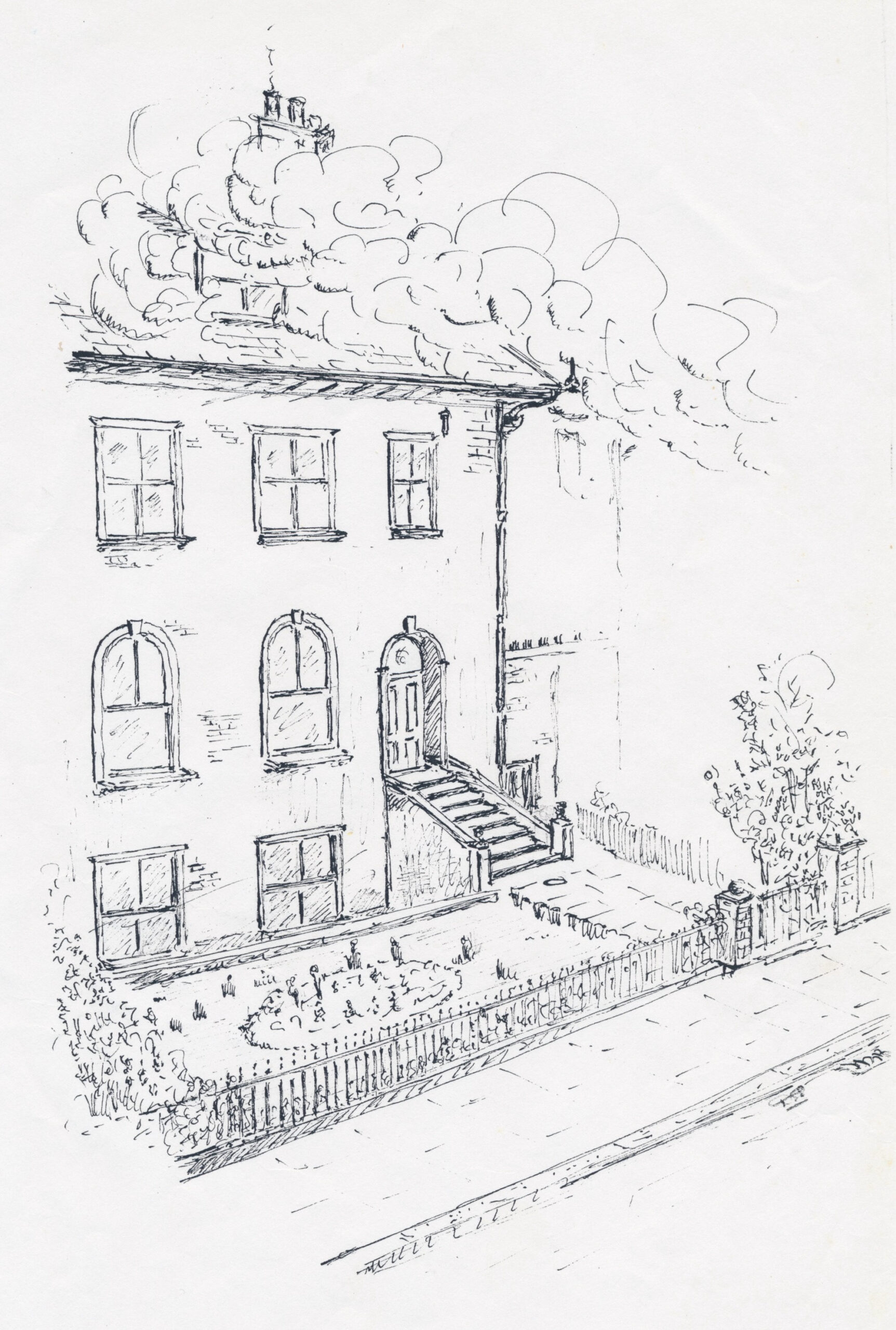 Very often, on such afternoons, the top storey of the house would be enveloped in great clouds of smoke and steam which eddied and curled from the dormer windows of the attic floor, to go billowing and hurrying down the street as if anxious to escape from the vibrations which appeared to invade the whole house, in varying intensity, from the basement level to the attics three floors up.