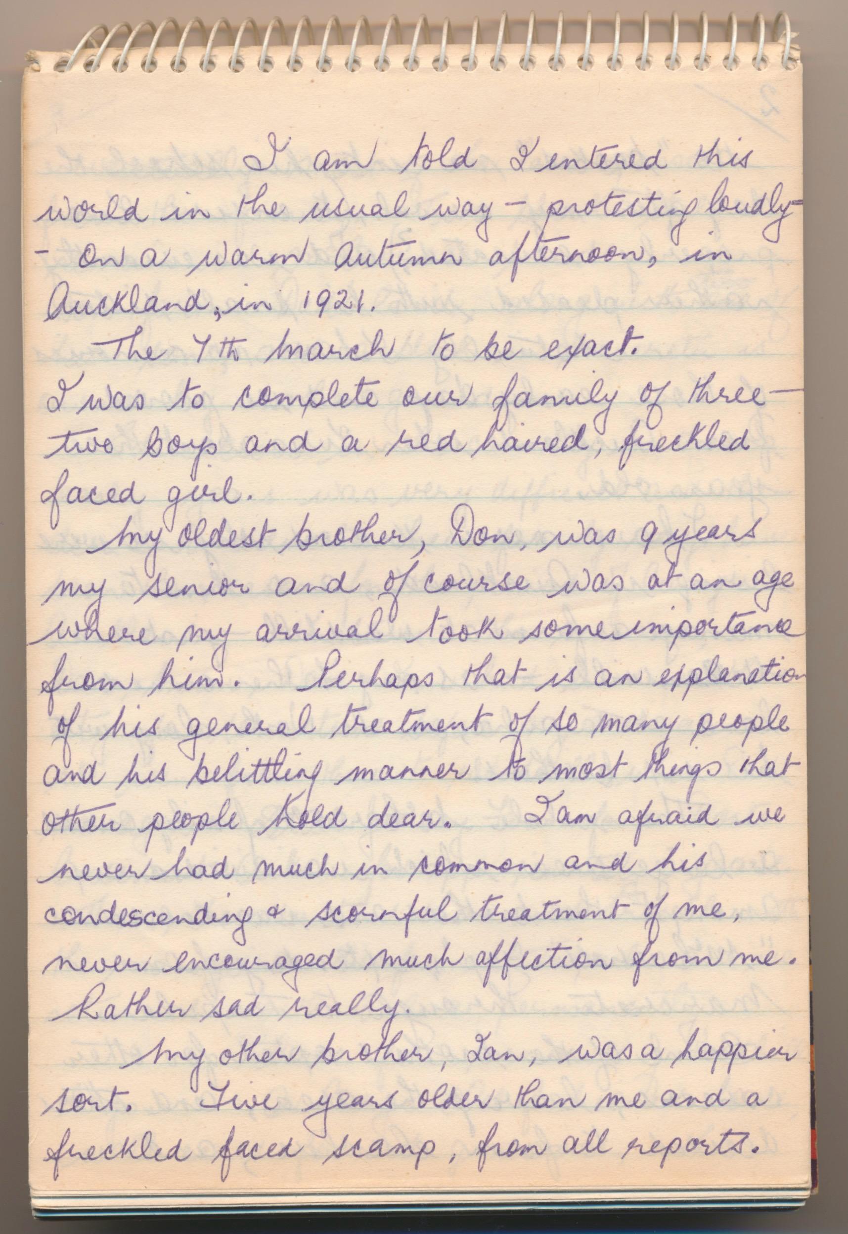 I’m told I entered this world in the usual way — protesting loudly — on a warm autumn afternoon in Auckland in 1921. The 7th March to be exact.