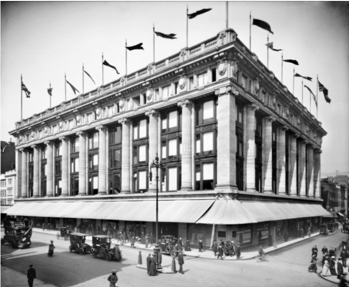 Selfridges in 1909: On the exterior the public saw “a classical front of unprecedented audacity and swagger”5, on the inside a dignified public space where Edwardian ladies could comfortably and legitimately indulge themselves.