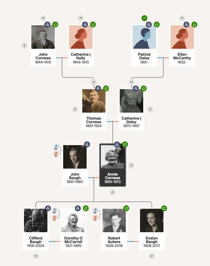 Thanks Ian, I’m afraid he is wrong, there was no mining industry in Liverpool. Best she could have been was a pit brow lass like her daughter Nellie but she wouldn’t have been a child, she was married when she came to Westhoughton. Also, her husband Thomas was not born in Bolton, he was born in West Derby, 1867. They lodged in James St with Thomas’ aunt’s family, the Duffys. Luckily, the house is still there because the others were demolished. There is a lot of information out there and I’ve been able to trace our family back to the 1600s in the Kirkham area, to a place called Cornah Row in Greenhalgh, but I have been researching for over 30 years now. Regarding birth, marriage and death certs, they are available from 1837, everyone had to register although some did slip through the net, and you can order online at the GRO. Pre 1957 you can request a pdf, which will make things easier. I’ve attached a photo of my grandma Kate Corness around the same time as Annie’s photo, she was also baptised a catholic but didn’t marry as one. Nice to hear memories about Jack Corness thanks, he was my grandma’s favourite brother and she did think about moving out there according to a letter I have. Best wishes, Wendy (I’ve also emailed this because of the photo)